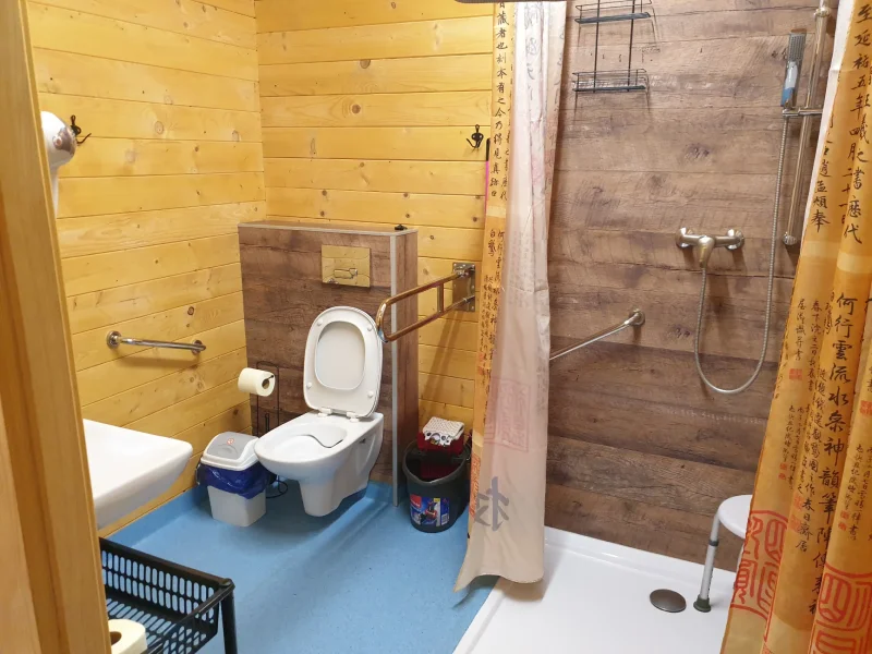 полностью оборудованной ванной комнатой, рассчитанных на 2–8 человек, всего около 500 мест. Домики