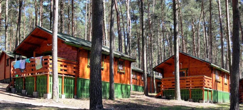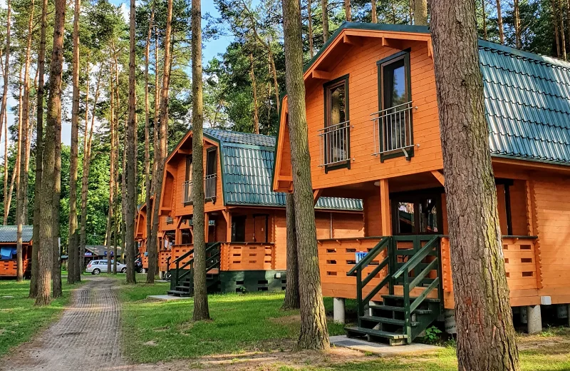 На территории базы расположено 130 комфортабельных деревянных домиков с террасой, мини-кухней и